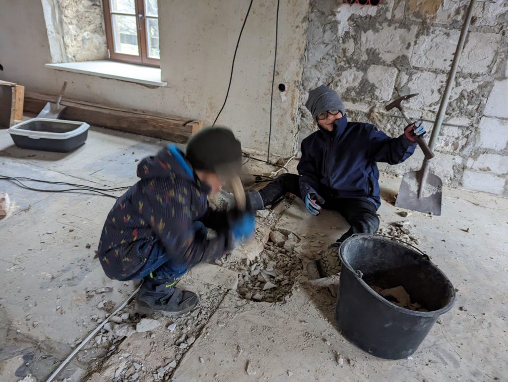Das Gute an einem alten Haus ist, dass hier jeder mal ein bisschen was machen darf. So war das immer, zumindest seit den 80er Jahren. Heute kommen manche hier her, um das, was sie damals eingebaut haben wieder rauszureißen. Bei den meisten Dingen war das nicht vorgesehen, dass einmal welche kommen, denen das nicht mehr gefällt. Die etwas Eigenes draus machen wollen. Jede Generation baut so ihr eigenes Ding. Vielleicht bleiben wir noch 20 Jahre hier. Bis dahin soll es schön gemütlich werden. Dann können unsere Nachfolger das Zeug wieder rausklopfen. Oder behalten.